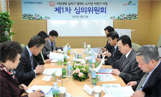 ▲홈플러스가 27일 역삼동 홈플러스 e파란재단 사무실에서 ‘제1차 어린 생명 살리기 지원 환아 심의위원회’를 열었다. 사진 왼쪽부터 시계방향으로 김자혜 소비자시민모임 사무총장, 설도원 홈플러스 e파란재단 사무총장, 구홍회 삼성서울병원 교수, 송효석 삼성서울병원 사회사업실 팀장, 이명희 풀무원 상무, 서종진 서울아산병원 교수, 김동수 세브란스 어린이병원장, 김진형 남영비비안 대표이사.