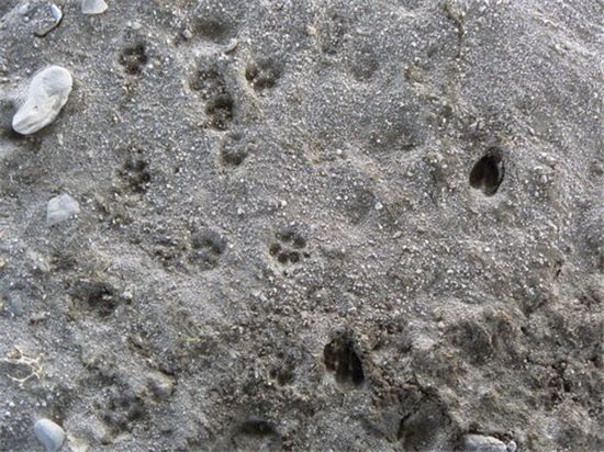 충북 청주시 무심천서 확인된 천연기념물 수달의 발자국.