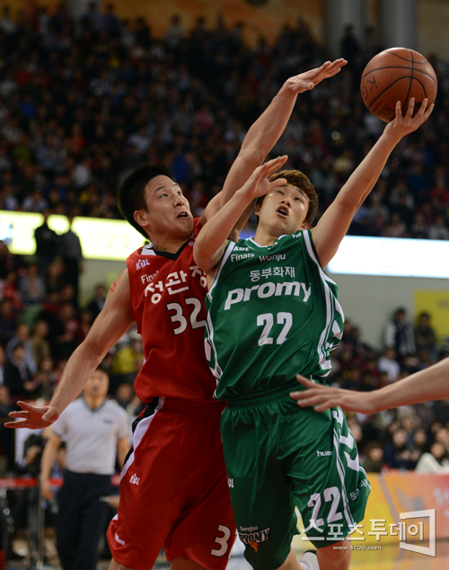 [안양=스포츠투데이 정재훈 기자] 31일 오후 안양실내체육관에서 열린 '2011~2012 KB 국민카드 프로농구' 안양 KGC 인삼공사와 원주 동부 푸르미의 챔피언결정전 3차전에서 안재욱이 김일두의 수비를 피해 슛을 쏘고 있다.스포츠투데이 정재훈 사진기자 roze@<ⓒ아시아경제 & 재밌는 뉴스, 즐거운 하루 "스포츠투데이(stoo.com)">