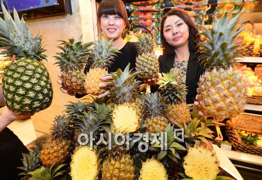 [아시아경제 윤동주 기자] 신세계백화점은 2일 서울 중구 소공동 본점에서 사과크기만한 미니 파인애플을 선보이고 있다. 태국에서 수입한 미니 파인애플은 개당 4,200원 판매한다.윤동주 기자 doso7@<ⓒ세계를 보는 창 경제를 보는 눈, 아시아경제(www.asiae.co.kr) 무단전재 배포금지>