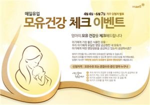 [아시아경제 이광호 기자]매일유업의 모유연구센터는 오는 6월7일까지 엄마의 모유 건강 체크 서비스를 통해 엄마들의 모유에 관한 궁금증을 해결해 주는 '모유건강 체크 이벤트'를 진행한다고 5일 밝혔다.이번 이벤트는 자신의 모유 상태를 궁금해 하는 엄마들의 궁금증을 해소하고 아기들에게 가장 좋은 모유를 먹일 수 있도록 돕기 위해 기획됐다. 모유수유 또는 혼합수유 중인 엄마라면 누구나 매일아이닷컴(//www.maeili.com/)에서 응모 가능하다. 당첨자는 격주로 15명씩 발표되며, 모유분석검사를 위한 150ml의 모유와 3일간의 식사일기를 작성해 보내면 150만원 상당의 모유분석 결과와 영양상담이 제공된다.정지아 매일유업 모유연구센터장은 "앞으로도 모유연구센터를 중심으로 지속적인 모유 연구와 자료 수집, 모유 건강 체크 서비스 등을 진행해 모유를 가장 잘 아는 기업으로서 아기들의 건강한 성장을 도울 계획"이라고 말했다. 이광호 기자 kwang@<ⓒ세계를 보는 창 경제를 보는 눈, 아시아경제(www.asiae.co.kr) 무단전재 배포금지>