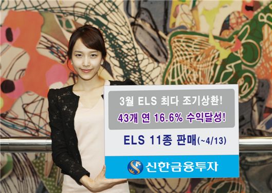 [아시아경제 송화정 기자]신한금융투자는 3월 한달 동안 주가연계증권(ELS) 상품 43개가 조기 상환돼 월간 기준 최다 조기상환 기록을 경신했다고 9일 밝혔다. 신한금융투자가 발행한 공모 ELS 중 3월 조기상환 현황을 분석한 결과 총 43개 상품이 조기상환 됐으며 연 평균 16.6%(이하 연 수익률)의 수익률을 나타냈다. 발행 후 조기상환까지 도달 기간은 평균 6.6개월이 소요됐으며 최단 기간 조기상환은 2.9개월이었다. 최고 수익률은 36.5%로 2011년 11월 발행한 종목형(하이닉스/GS) 상품이었다. 조기상환된 ELS는 기초자산 종류에 따라 수익률과 상환기간의 차이를 보였다. 종목형의 경우 평균 22.4%, 최고 36.5%의 높은 수익률을 기록했으며 총 21개 상품이 조기상환 됐다. 지수형은 평균 11%, 최고 15.7%의 수익을 달성했으며 총 22개 상품이 조기상환 됐다. 조기상환까지 도달 기간은 지수형이 6.2개월로 종목형(7.1개월) 보다 짧았다. OTC영업부 최영식 부장은 "신한금융투자는 수익률이 조금 낮더라도 안정적인 상품 발행에 역점을 두고 있다"며 "상환 확률이 높은 구조와 안정적인 기초자산 선택으로 고객수익 창출에 최선을 다 하겠다"고 말했다. 한편, 신한금융투자는 오는 13일까지 다양한 기초자산과 수익구조를 갖춘 ELS 11종을 총 640억 규모로 판매한다. 그 중 '신한금융투자 ELS 4288호'는 LG전자 보통주/OCI 보통주를 기초자산으로 하는 3년 만기 원금비보장형 상품이다. 이 상품은 만기까지 최초기준가격의 50% 이상 손실이 발생한 적이 없다면 연 20.5%의 수익을 얻을 수 있다. 이번 ELS상품들은 금융투자상품 분리에 따라 ELS 4280, 4281호는 저위험(4등급), 4282~4290호는 고위험(2등급)으로 분류된다. 최소 가입금액은 100만원이고 신한금융투자 지점 및 금융상품몰(www.shinhaninvest.com)에서 가입할 수 있다.