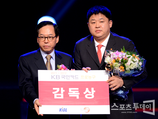 [스포츠투데이 정재훈 기자] 9일 오후 양재동 교육문화회관 대극장에서 '2011~2012 KB 국민카드 프로농구 시상식이 열렸다. 감독상을 수상한 원주 동부 강동희 감독.스포츠투데이 정재훈 사진기자 roze@<ⓒ아시아경제 & 재밌는 뉴스, 즐거운 하루 "스포츠투데이(stoo.com)">