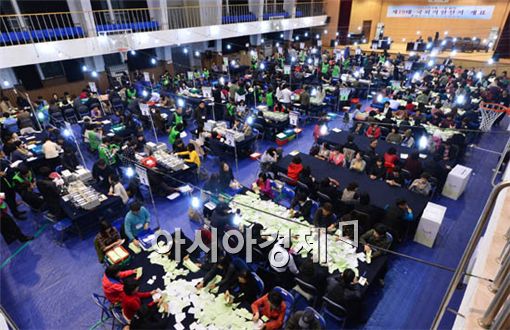 [아시아경제 양지웅 기자] 제19대 국회의원 선거 투표가 종료된 11일 서울 영등포 개표소가 마련된 여의도 고등학교에서 개표사무원들이 투표용지를 분류하고 있다.양지웅 기자 yangdoo@<ⓒ세계를 보는 창 경제를 보는 눈, 아시아경제(www.asiae.co.kr) 무단전재 배포금지>