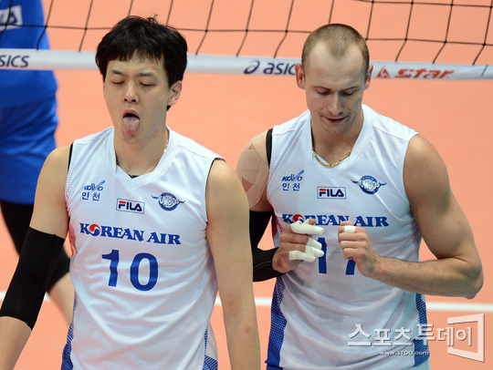 [스포츠투데이 김흥순 기자]팽팽한 접전이 이어지던 1세트 중반부터 네맥 마틴(대한항공)의 표정이 굳어지기 시작했다. 어깨는 점점 처지고 특유의 파이팅 넘치는 패기도 자취를 감췄다. 동료들의 격려에도 활기는 되살아나지 않았다. 그렇게 패배의 그림자는 짙게 드리워지고 있었다. 대한항공이 주포 마틴의 부상 공백을 극복하지 못하고 우승 문턱에서 고배를 마셨다. 대한항공은 12일 인천 도원실내체육관에서 열린 NH농협 2011~2012 V-리그 남자부 챔피언결정전 4차전에서 삼성화재에 세트스코어 0-3(22-25 21-25 17-25)으로 무릎을 꿇었다. 5전 3선승제 시리즈 1, 2차전을 내주고 3차전에서 반격에 성공한 대한항공은 승부를 최종전까지 끌고 가겠다는 의지를 불태웠지만 결국 뜻을 이루지 못했다. 2년 연속 챔피언결정전에 진출해 창단 첫 우승을 노렸지만 삼성화재의 높은 벽을 넘지 못했다.불운은 1세트에서 예견됐다. 홈팬들의 성원을 등에 업고 한 점차 승부를 펼치던 대한항공은 마틴이 갑작스런 컨디션 난조를 보이면서 흔들리기 시작했다. 포스트시즌부터 오른쪽 어깨 부상에 시달리던 마틴은 초반 서브에이스를 성공시키는 등 맹활약을 펼치며 투혼을 발휘하는 듯 했다. 그러나 3차전서 뜻하지 않게 찾아온 손가락 부상이 발목을 잡았다. 밸런스가 무너지면서 공격과 수비에 대한 의욕을 잃었다. 작전 타임 상황에서도 동료들과 떨어져 응급 치료를 받는데 주력했다. 통증을 참아가며 악착같이 경기에 임했지만 몸이 따라주지 않았다. 스파이크는 번번이 상대 블로킹에 막혔고 리시브도 불안했다. 자신을 향해 날아오는 공이 버거워만 보였다.