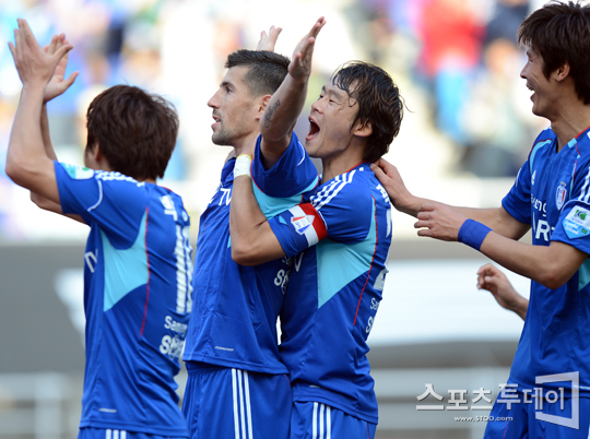 [수원=스포츠투데이 정재훈 기자] 수원 삼성이 14일 오후 수원월드컵경기장에서 열린 '현대 오일뱅크 K리그 2012' 대구FC와의 경기에서 스테보의 결승골로 1:0 승리, 홈 5연승을 달렸다. 스포츠투데이 정재훈 사진기자 roze@<ⓒ아시아경제 & 재밌는 뉴스, 즐거운 하루 "스포츠투데이(stoo.com)">