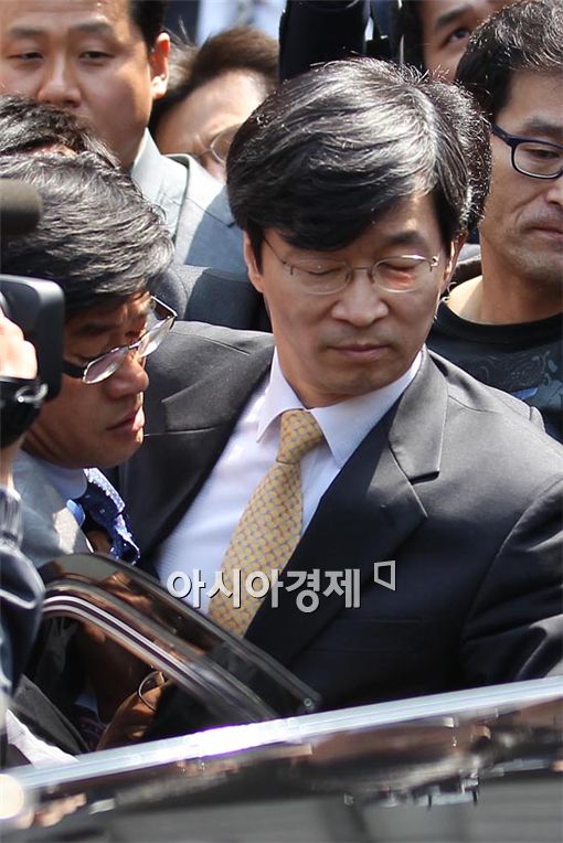 [아시아경제 양지웅 기자] 후보자 매수 혐의로 징역 1년을 선고 받은 곽노현 서울시교육감이 17일 서초구 서울고등법원에서 항소심 선고 공판을 마친 후 차량에 탑승하고 있다. 곽 교육감은 이날 공판에서 징역 1년을 선고 받았으나 법정 구속은 면해 직위는 계속 수행하게 됐다.양지웅 기자 yangdoo@<ⓒ세계를 보는 창 경제를 보는 눈, 아시아경제(www.asiae.co.kr) 무단전재 배포금지>