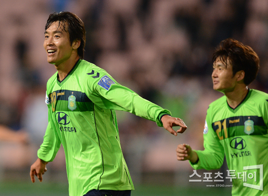 [전주=스포츠투데이 정재훈 기자] 17일 오후 전주월드컵경기장에서 열린 '2012 AFC 챔피언스리그' 전북 현대와 부리람의 경기에서 동점골에 이어 역전골까지 터뜨린 이동국이 세레모니를 펼치고 있다.스포츠투데이 정재훈 사진기자 roze@<ⓒ아시아경제 & 재밌는 뉴스, 즐거운 하루 "스포츠투데이(stoo.com)">