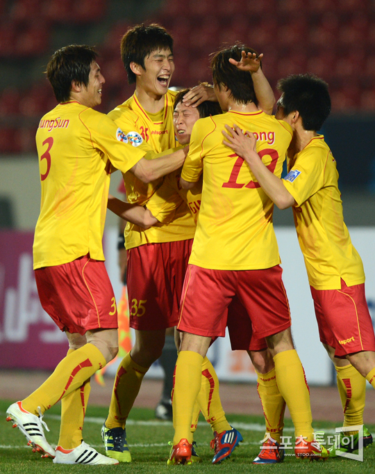[성남=스포츠투데이 정재훈 기자] 18일 오후 탄천종합운동장에서 열린 '2012 AFC 챔피언스리그' 성남 일화와 센트럴 코스트의 경기에서 선제골을 터뜨린 이창훈이 동료들의 축하를 받고 있다.스포츠투데이 정재훈 사진기자 roze@<ⓒ아시아경제 & 재밌는 뉴스, 즐거운 하루 "스포츠투데이(stoo.com)">