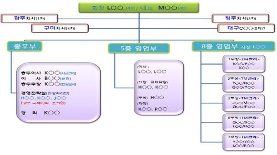 100억원대 땅 분양사기를 한 유령건설회사 조직도.