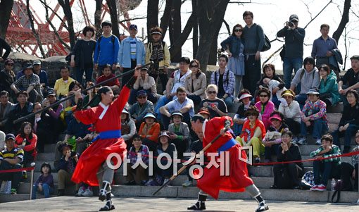 [포토] '남산에 가면 벚꽃도 즐기고 전통 공연도 즐기고'