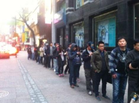 프리스비 명동점이 트위터에 공개한 20일 뉴아이패드 구매행렬.
