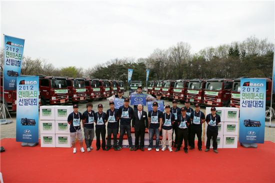 [아시아경제 최일권 기자] 현대차는 19일 대형트럭 ‘트라고’의 연료비 절감효과를 알리기 위해 '2012 트라고 연비마스터 선발대회'를 개최했다.이번 행사는 사전 선발된 15명의 우수 연비 고객들이 서울시 양재동 교육문화회관을 출발해 경부고속도로 안성TG까지 왕복 약 118km 구간을 운행하는 동안 소모된 연료량을 측정하는 방식으로 진행됐다.대회 1~3위 입상 차량은 모두 8.5km/ℓ 이상을 주행했으며 참가 차량의 평균 연비도 8.2km/ℓ을 기록했다. 적재량 25.5t 이상의 대형 덤프트럭이 공차 상태로 주행시 평균 연비가 약 5km/ℓ 수준임을 감안할 때 상당하 높은 수치다.1위는 9.1km/ℓ의 연비를 기록한 박승규 씨가 차지했다. 박씨에게는 ‘연비마스터’ 트로피와 함께 부상으로 400만원 상당의 주유상품권을 수여했다.또 2, 3 위 입상자에게는 각각 200만원과 100만원 상당의 주유상품권을, 참가자 전원에게는 대형 덤프트럭 대차 특별 할인쿠폰, 엔진오일 교환 풀세트 등을 제공했다.최일권 기자 igchoi@<ⓒ세계를 보는 창 경제를 보는 눈, 아시아경제(www.asiae.co.kr) 무단전재 배포금지>