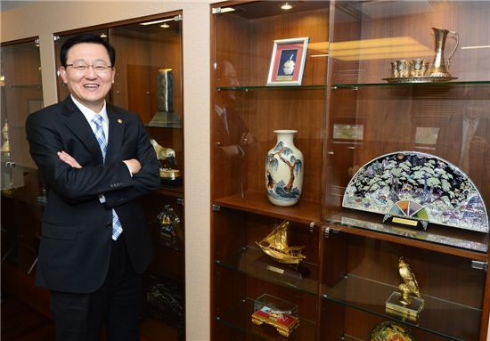 -중견기업에 무척 관심이 많다. ▲중소기업청장 시절 대기업과 중소기업 사이에 낀 중견기업에 대해 관심을 갖게 됐다. 중견기업들 스스로 불만이 있지만 사실 중견기업은 모든 중소기업의 꿈 아닌가. 무역 2조불 시대의 새로운 수출 원동력이 될 수 있을 것이다. 또 양질의 일자리를 만들어낼 수 있는 핵심 첨병이다. 그런 점에서 중견기업 육성은 시대적 소명이다. 중견기업 정책의 틀을 다진 장관으로 기억되고 싶다. -중견기업국 설립의 구체적인 로드맵이 있나.▲최근 중견기업국 설립안이 차관회의를 통과했다. 이번 주 국무회의를 통과하게 된다. 대통령께서 적극 지지해주고 있어 힘이 된다. 처음엔 '국'이 아닌 '과' 정도를 생각했는데 더 잘 풀렸다. 중견기업을 위한 큰 전담 조직이 생긴 만큼 현재의 1300여개 중견기업을 위한 맞춤형 지원에 초점을 맞추겠다.-중견기업 육성 대책엔 어떤 내용이 담기나.▲3가지 기본 방향으로 추진된다. 연구개발(R&D)ㆍ해외 마케팅 등 글로벌 진출을 위한 지원 시책 발굴, 중소기업 졸업으로 인한 급격한 부담을 합리적으로 완화하는 제도적 기반, 중견기업 인식 개선 유도로 우수 인재 확보 등이 그것이다. 현행법상으로는 중소기업을 졸업하면 160여개 시책과 제도상 지원 대상에서 제외된다.-대기업과 중소ㆍ중견기업과의 동반성장을 강조한다. 그렇지만 성과공유제의 성과는 좀 저조한 것 같은데.▲성과공유제는 2006년 상생법에 근거해 확산을 추진했으나 미흡했다. 솔직히 인정한다. 체계적 추진 시스템의 부재와 기업의 관심 부족에 따른 결과다. 성과공유제 개념과 모델이 불명확해 기업에선 일상적 협력 활동을 성과공유제로 해석하는 것 같다. 이달 말 성과공유제 연구회 운영과 성과공유 확인제 시행을 통해 객관적 평가를 시작할 거다. 우수 기업엔 인센티브를 제공하고 5월 중으로 30개 내외 대기업과 협약을 맺을 예정이다.-미래 먹거리로 '융합'이 뜨고 있는데. 중소ㆍ중견기업의 역할은.▲21세기 세계 경제는 '융합의 시대'다. 이미 산업 패러다임이 급격히 변화 중이다. 융합은 포화 상태에 이른 기존 주력 산업에 고부가가치를 덧붙인 개념이다. 전문 기관 통계를 보면 융합 신 시장 규모는 내년 20조3000만달러에서 2018년이면 68조1000만달러로 3배 이상 성장할 것으로 예상된다. 우리는 자동차와 조선 등 양대 주력 산업에 강점인 IT 기술을 접목해 성과를 내고 있다. 정부가 융합형 비즈니스를 촉발시키는 데 주력한다면 자연스레 중소·중견기업에게 성장의 기회가 생길 것이다. 이는 일자리 창출로 이어지게 된다.-취임 후 가장 기뻤던 순간으로 무역 1조불 달성을 꼽았다. 올해 수출은 어떨 것으로 보는가.▲2~3월 연속 흑자로 1ㆍ4분기 누계 무역수지 흑자를 기록했다. 하지만 수출 증가율이 둔화되는 등 무역 환경이 어려운 것은 맞다. 올해 수출은 지난해와 비교해 한 자릿수 증가가 예상된다. 무역 1조불에서 후퇴하지는 않을 것이다. 다만 무역 2조불 시대로 가기 위해선 제조업에 편중된 수출 구조는 물론, 대기업 위주의 가격 경쟁력ㆍ수입 중간재 의존도 등 약점을 극복해야만 가능하다. 중견기업의 글로벌화를 지원하고 수출 품목을 다양화할 필요가 있다.홍석우 장관은 누구인가홍석우 장관은 지식경제부 내에서 '맏형'으로 통한다. 1980년 행시 23회로 공직에 입문한 이래 지경부 식구들과 30여년간 한솥밥을 먹었다. 업무적으로는 어렵지만, 사적인 자리에선 후배들이 격의없이 대할 수 있는 선배 중 한 명이다.최근엔 지경부 과장급 이상 공무원들에게 '열공(열심히 공부)'을 강조한다. 중기청장과 코트라 사장을 거친 것도 산업계 전반을 아우르는 미시ㆍ거시적 안목을 기르는데 도움이 됐다.고집스런 인사 원칙은 유명하다. 홍 장관은 "친소 관계와 무관하게 원칙대로 명확하게 인사를 해야 조직을 통솔할 수 있다"는 게 지론.술자리에서는 막걸리와 소주에 홍초를 섞은 '혼돈주' 전도사로 알려져 있다. 판소리에도 관심이 많아 가끔 흥이 나면 직접 '소리'를 하기도 한다.<약력>▲1953년 청주 ▲경기고ㆍ 서울대 무역학과 ▲행시 23회 ▲산업자원부 무역정책과장, 홍보관리관,무역투자정책본부장 ▲중소기업청장 ▲AT커니코리아 부회장 ▲코트라 사장김혜원 기자 kimhye@<ⓒ세계를 보는 창 경제를 보는 눈, 아시아경제(www.asiae.co.kr) 무단전재 배포금지>