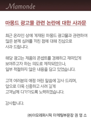 마몽드 사과문(출처" 마몽드 공식 홈페이지)