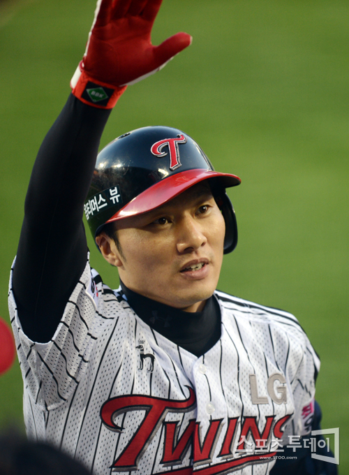 [스포츠투데이 정재훈 기자] 26일 오후 잠실야구장에서 열린 '2012 팔도 프로야구' LG 트윈스와 넥센 히어로즈의 경기 1회말 2사 만루 상황에서 김일경이 만루홈런을 터뜨린 후 팬들을 향해 손짓하고 있다.스포츠투데이 정재훈 사진기자 roze@<ⓒ아시아경제 & 재밌는 뉴스, 즐거운 하루 "스포츠투데이(stoo.com)">