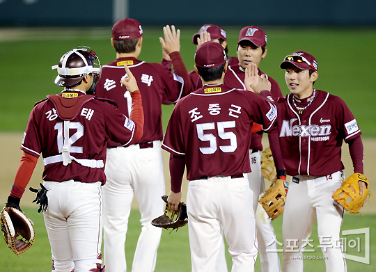 [스포츠투데이 정재훈 기자] 넥센 히어로즈가 26일 오후 잠실야구장에서 열린 '2012 팔도 프로야구' LG 트윈스와의 경기에서 9회초 역전을 이뤄내며 9:7 승리를 거뒀다. 스포츠투데이 정재훈 사진기자 roze@<ⓒ아시아경제 & 재밌는 뉴스, 즐거운 하루 "스포츠투데이(stoo.com)">