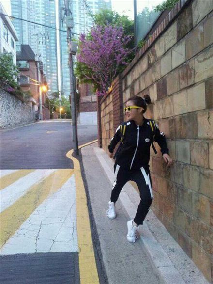 사진에는 강소라가 검은색 트레이닝복에 노란색 선그라스를 쓴 채 레이디가가를 흉내낸 듯한 포즈를 취하고 있다. 담벼락에 붙어 뛰는 듯한 자세와 올려 묶은 꽁지머리는 평소 청순한 이미지와는 다른 발랄한 모습이다.