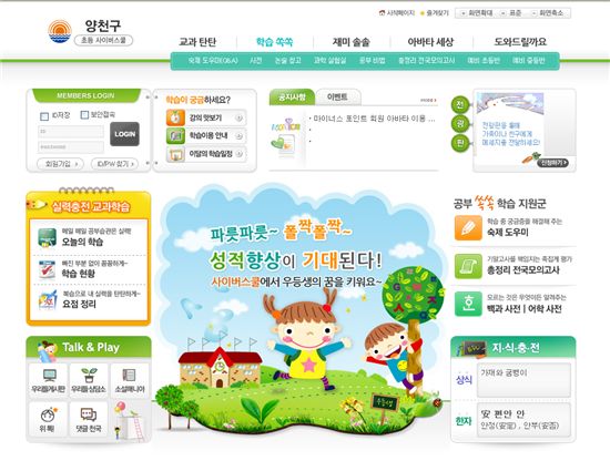 과목별 담당 선생님이 서포터해 주는 ‘숙제 도우미’와 논술·독서·쓰기 등 자료를 모두 모아 둔 ‘논술 창고’, 최신 영어 이론을 토대로 구성한 ‘펀&스마트 잉글리시’, 그리고 5·6학년을 대상으로 중등 학습을 미리 준비할 수 있게 도와주는 ‘예비 중등반’ 등 다양한 학습 코너를 구축했다.이로써 아이들이 자연스럽게 창의력과 논리력을 향상시킬 수 있도록 하고 있다. '중등 사이버스쿨(//junior.yangcheon.go.kr)'역시 편리하고 효과적인 멀티미디어 기능을 학습 과정에 적극 반영, 학습자가 공부에 흥미를 느끼도록 하고 하는 학습도우미이다. 매일매일 새로운 5분 강의로 상식과 내신을 동시에 챙길 수 있는 ‘중꼭백(중학생이 꼭 알아야 할 100가지)’과 교과서 내용을 즐겁고 쉽게 이해할 수 있는 ‘테마특강’, 동영상 강좌 수강 후 실력을 꼼꼼히 점검하고 한 단계 업그레이드할 수 있는 ‘문제은행’, 그리고 ‘과목별 학습법’과 ‘시험대비가이드’ 등으로 구성되어 효과적인 자기주도 학습을 할 수 있도록 했다. 양천구 관계자는 “앞으로 초·중등 사이버스쿨 운영을 통해 체계적이고 효율적인 학습 프로그램을 지속해서 제공할 것"이라면서 "상시적인 모니터링을 통해 좀더 쉽고 편리하게 학생들이 접근할 수 있도록 노력하겠다”고 밝혔다. 양천구 교육지원과(☎2620-3115) 박종일 기자 dream@<ⓒ세계를 보는 창 경제를 보는 눈, 아시아경제(www.asiae.co.kr) 무단전재 배포금지>