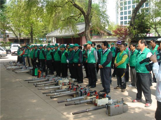[아시아경제 박종일 기자]종로구(구청장 김영종)는 4일 사직단에서 새마을 방역봉사대 발진식 갖고 여름철 불청객인 모기·파리와 힘겨운 한판 승부를 벌이기 위한 방역활동을 시작한다.새마을지도자 종로구협의회 주관으로 열리는 발진식에는 새마을 지도자 자율방역봉사대원 130여 명이 참여할 예정이다.새마을회원들이 자발적으로 순번을 정해 방역봉사를 하고 있는 봉사대는 매년 종로 구석구석 발이 닿지 않는 곳이 없을 만큼 열심히 봉사활동을 펼쳐 왔다. 올해도 봉사대는 매주 3회 책임구역을 지정, 취약지역과 각종 쓰레기 등으로 인해 악취가 심한 곳을 집중적으로 방역 소독해 깨끗하고 쾌적한 환경 만들기에 앞장설 계획이다.