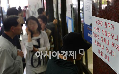 [아시아경제 양지웅 기자] 경영상태가 부실한 저축은행들의 추가 퇴출을 앞두고 불안을 느낀 예금주들이 4일 서울 중구의 한 저축은행에 몰려 있다. 양지웅 기자 yangdoo@<ⓒ세계를 보는 창 경제를 보는 눈, 아시아경제(www.asiae.co.kr) 무단전재 배포금지>