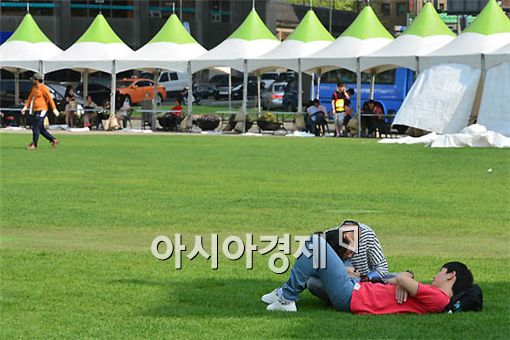 [아시아경제 양지웅 기자] 초여름 더위가 연일 계속되는 4일 오후 중구 서울광장에 설치된 대형 석등이 만든 그늘에서 시민들이 더위를 피하고 있다.양지웅 기자 yangdoo@<ⓒ세계를 보는 창 경제를 보는 눈, 아시아경제(www.asiae.co.kr) 무단전재 배포금지>