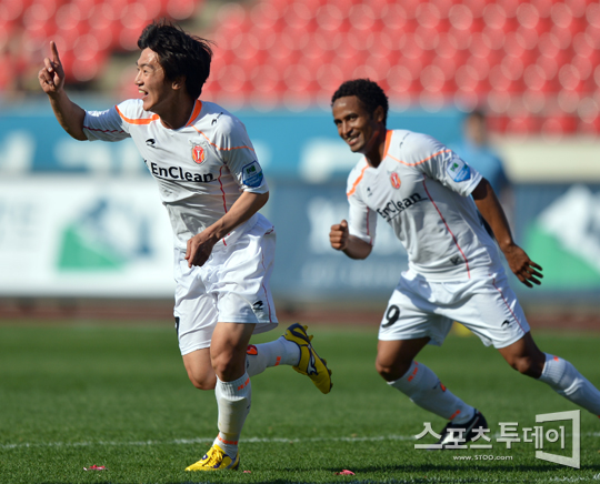 [성남=스포츠투데이 정재훈 기자] 5일 오후 탄천종합운동장에서 열린 '현대 오일뱅크 K리그 2012' 성남 일화와 제주 유나이티드의 경기에서 선제골을 터뜨린 송진형이 환호하고 있다.스포츠투데이 정재훈 사진기자 roze@<ⓒ아시아경제 & 재밌는 뉴스, 즐거운 하루 "스포츠투데이(stoo.com)">