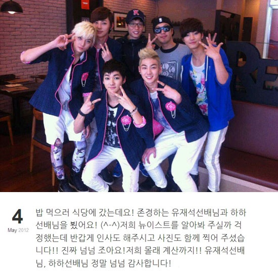 [아시아경제 박충훈 기자]방송인 유재석이 식당에서 만난 신인 아이돌 그룹의 밥값을 대신 계산해줘 화제다.4일 뉴이스트 멤버 백호는 미투데이에 "밥 먹으러 식당에 갔는데 유재석 선배님과 하하 선배님을 뵈었다"는 글을 올렸다.그는 "뉴이스트를 알아봐 주실까 걱정했는데 반갑게 인사도 해주시고, 사진도 찍고 몰래 계산도 해주셨다"라고 기뻐했다.백호가 글과 함께 공개한 '인증 사진'에서 유재석은 마치 팬들과 사진을 찍듯이 브이자를 한 뉴이스트 멤버들에 둘러 싸여 미소를 짓고 있다.다수의 블로그와 온라인 매체가 앞다퉈 '유재석 밥값 계산'이라는 키워드로 이 소식을 전함에 따라 뉴이스트는 밥값계산 뿐 아니라 홍보효과도 톡톡히 보고 있다.뉴이스트는 애프터스쿨과 같은 소속사의 남자 아이돌 그룹으로 '애프터스쿨 보이즈', '플래디스 보이즈'라는 별명으로 유명세를 타고 있다.박충훈 기자 parkjovi@<ⓒ세계를 보는 창 경제를 보는 눈, 아시아경제(www.asiae.co.kr) 무단전재 배포금지>