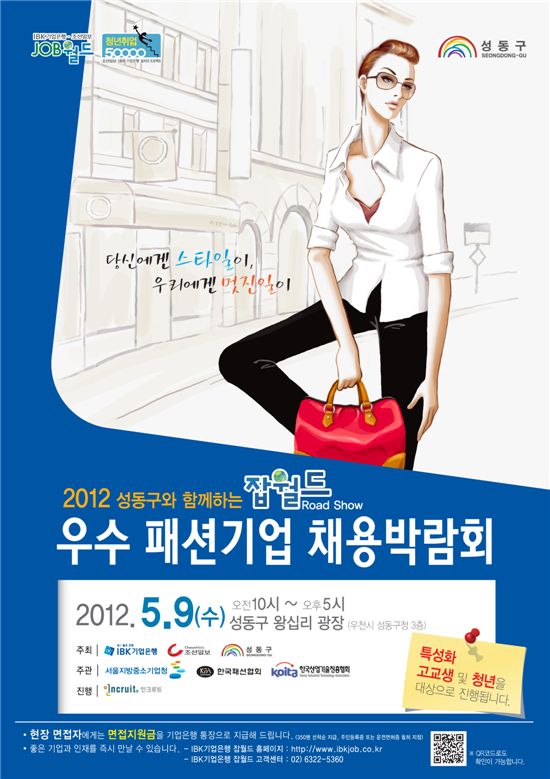 구직자들에게는 지역 패션산업의 현재와 미래 발전 가능성을 선보여 관련 분야 진출을 위한 동기 부여 기회를 제공한다. 패션쇼에서는 한국패션협회 20명이 지역 스타일 살리는 구두, 가방 등 60여점을 선보일 예정이다.채용기업에게는 정규직 채용 1인 당 100만원 기업은행 ‘일자리창출지원 특별펀드’가 제공되고 구직자에게는 선착순으로 면접지원금 1만원과 명품 수제화 특별할인 혜택도 주어진다.이와 함께 당일 성동구청 광장에서는 성동제화협회에서 명품 수제화 여성용 1060족, 남성용 1260족, 아동화 등 3000여점을 3만 원에서 3만9000원 저렴한 가격에 판매한다. 판매수익금은 지역의 어려운 이웃돕기에 사용될 예정이다. 특별 코너로 수제화명장이 구두도 직접 수선해 주며 구두손질법과 수제화 잘 고르는 법도 알려 준다.고재득 구청장은 “기업이 살아나야 일자리가 늘어난다”며 “고용유발계수가 높은 패션산업 육성을 위한 기업지원 행사와 함께 학력을 탈피한 청년 채용의 장을 마련했다”고 말했다.참여기업 등 관련 정보는 취업박람회 홈페이지(//www.ibkjob.co.kr)나 성동구 일자리정책과(☎ 2286-6387)로 문의하면 된다.박종일 기자 dream@<ⓒ세계를 보는 창 경제를 보는 눈, 아시아경제(www.asiae.co.kr) 무단전재 배포금지>