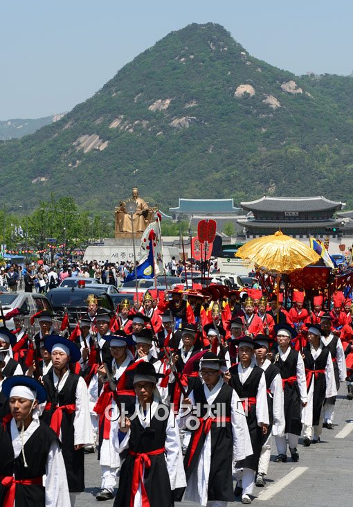 [아시아경제 윤동주 기자] 6일 서울 광화문일대에 종묘제례봉행을 위한 어가행렬이 지나가고 있다. 종묘제례는 조선왕조 역대 왕과 왕비의 신위를 모신 종묘에서 국태민안과 왕조의 번영을 기원하던 의식으로 지난 2001년 유네스코에 의해 제례악과 함께 인류구전 및 무형문화유산으로 지정됐다.윤동주 기자 doso7@<ⓒ세계를 보는 창 경제를 보는 눈, 아시아경제(www.asiae.co.kr) 무단전재 배포금지>