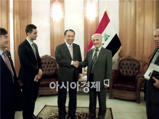 강덕수 STX그룹 회장(사진 가운데 왼쪽)은 지난 7일 이라크 바그다드 부총리관저에서 알 샤리스타니(사진 가운데 오른쪽) 부총리와 만남을 가졌다.<br />