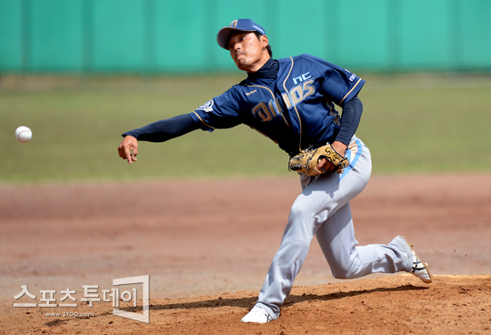[성남=스포츠투데이 정재훈 기자] 15일 오후 국군체육부대 상무 야구장에서 열린 '2012 퓨쳐스리그' 상무 야구단과 NC 다이노스의 경기. 7회말 구원 등판한 정성기가 역투하고 있다.스포츠투데이 정재훈 사진기자 roze@<ⓒ아시아경제 & 재밌는 뉴스, 즐거운 하루 "스포츠투데이(stoo.com)">