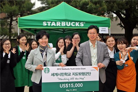 [아시아경제 오주연 기자]스타벅스커피 코리아는 월드비전 세계시민학교에 젊은 사회활동가 지원 기금으로 1만5000달러(한화 1680만원)를 전달했다고 15일 밝혔다.이번 기금은 전세계 젊은 사회 활동가 지원 사업인 '유스 액션 그랜트' 기금으로 1997년 하워드 슐츠 스타벅스 회장에 의해 설립된 비영리 공익 재단인 스타벅스 재단에 출연하는 기금이다. 지금까지 약 2500만불의 기금이 조성돼 전세계 스타벅스 매장이 있는 국가와 커피 원산지 지역 사회 젊은이들을 위해 사용됐다. 스타벅스는 이번 기금을 스타벅스재단이 지원하는 월드비전 코리아의 '지도 밖 행군단' 프로젝트에 사용할 예정이다. 지도 밖 행군단은 빈곤, 인권, 기후변화, 문화 다양성, 평화 등의 지구 공동의 이슈에 관심을 가진 국내 청소년들을 세계시민으로 양성하는 청소년 캠프 사업이다. 국제 구호 전문가 한비야씨가 지난 해 12월 세계 시민 학교 초대 교장으로 부임했으며 스타벅스커피 코리아는 기금 지원과 함께 다양한 직원 참여 봉사 활동을 벌이고 있다.오주연 기자 moon170@<ⓒ세계를 보는 창 경제를 보는 눈, 아시아경제(www.asiae.co.kr) 무단전재 배포금지>
