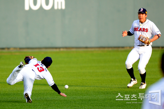 [스포츠투데이 정재훈 기자] 15일 오후 잠실야구장에서 열린 '2012 팔도 프로야구' 두산 베어스와 한화 이글스의 경기에서 손시헌이 1회초 첫타자 강동우의 타구를 놓치며 안타를 허용하고 있다.스포츠투데이 정재훈 사진기자 roze@<ⓒ아시아경제 & 재밌는 뉴스, 즐거운 하루 "스포츠투데이(stoo.com)">