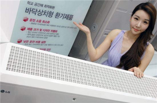 LG전자가 복잡한 시공 없이 간편하게 학교 바닥에 설치 가능한 환기 시스템 ‘에코 브이 스탠딩(eco V STANDING)’을 16일 출시했다. <br />