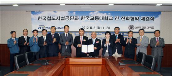 [아시아경제 왕성상 기자] 한국철도시설공단과 한국교통대학교가 서로 발전하기 위해 손잡았다.한국철도시설공단은 21일 대전 본사에서 한국교통대와 인력 및 지식·기술의 상호교류, 철도산업에 대한 공동연구, 철도전문인력 양성 등에 협력키로 하는 업무협약을 맺었다.이날 산학협력식엔 김광재 철도공단 이사장, 장병집 한국교통대 총장과 양쪽 관계자 20여명이 참석했다. 오왕교 철도공단 인재개발실장은 “철도공단은 2004년도 설립 후 서울과학기술대, 충남대, 서울대, 한국과학기술대, 우송대 등 국내 대학과 철도기술연구원, 교통개발연구원, 건설산업연구원 등 연구기관을 포함해 모두 16개 기관과 협약을 맺고 철도기술력 향상과 철도전문인력 양성을 위해 산학협력을 강화하고 있다”고 말했다.왕성상 기자 wss4044@<ⓒ세계를 보는 창 경제를 보는 눈, 아시아경제(www.asiae.co.kr) 무단전재 배포금지>