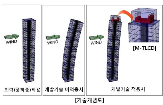 현대건설이 국내 처음 개발한 양방향 멀티셀 진동제어 장치 개념도