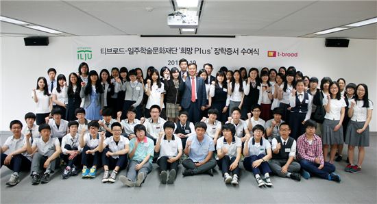 [아시아경제 심나영 기자]국내 최대 케이블TV 방송사 티브로드(대표 이상윤)와 일주학술문화재단은 서울 티브로드 본사에서 '제2기 청소년 희망 Plus 장학생'으로 선발된 고교생 총 65명에 대한 장학증서 수여식을 진행했다고 22일 밝혔다.지난해에 이어 올해 두 번째로 시행되는 티브로드-일주학술문화재단의 '청소년 희망 Plus 장학사업'은 티브로드의 전국21개 방송권역 (서울, 부산, 대구, 인천, 경기, 충남, 전북 등)에 거주하는 고교생을 후원하는 사업이다. 해당지역 구청, 교육청, 시민단체 등이 추천한 학생들을 일주학술문화재단이 개별 학생들의 가정 형편, 학업에 대한 의지 등에 대한 종합적인 심사를 거쳐 장학금, 교복 등을 지원한다. 특히 올해는 지난해 선발된 1기 장학생 중 가정형편 및 학업우수 등에 따라 총 10명을 작년에 이어 지속적으로 후원하기로 했다.티브로드와 일주학술문화재단은 장학생으로 선발된 학생들에게 1인당 200만원을 분기별로 나눠 지원하며, 별도로 분기별로 교재비 및 교복 등을 후원한다. 또한 여름방학기간에는 직원들과 함께 ‘제2회 희망나눔 캠프’를 열어 봉사활동 문화체험, 방송국 견학, 일주재단 학사 장학생과 멘토-멘티 활동 등을 장학생들과 함께 유익한 프로그램도 진행할 예정이다.이 대표는 "올해 2회째를 맞이한 희망Plus 청소년 장학사업은 일회성 행사가 아니라 학생들의 꿈과 희망을 후원하는 프로그램으로, 지역을 기반으로 하고 있는 방송사업자인 티브로드는 학생들이 미래의 인재로 성장하는 과정에 함께 하고자 지속적으로 후원을 펼쳐나갈 계획"이라고 밝혔다. 이외에도 향후 장학생들이 대학에 진학할 경우, 미래인재 양성차원에서 일정 정도 자격조건을 갖춘 학생에게는 일주학술문화재단의 학사 장학생과 연계할 수 있는 기회 또한 제공할 예정이다.심나영 기자 sny@<ⓒ세계를 보는 창 경제를 보는 눈, 아시아경제(www.asiae.co.kr) 무단전재 배포금지>