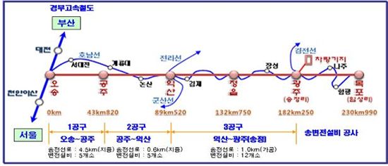 호남고속철도 전철전원설비 신설공사 사업구간 약도