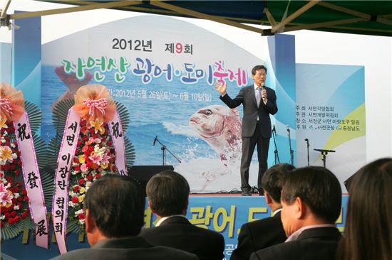 제9회 광어, 도미축제 개막식에서 나소열 서천군수가 축사를 하고 있다.