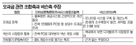 전국의 PC방이 1만6000여개로 추정되는 가운데 각 매장당 1개의 PC에서 2초 정도만 계산이 잘못 됐더라도 전국적으로 약 3만2000초(533분)가 된다는 게 협동조합측 설명이다. 최 이사장은 "이에 대한 과금이 시간당 약 253원 수준으로 PC 1대당 매 시간 약 2226원이 비정상적으로 지출된다"며 "보통 PC방 한 곳에 수십 대의 PC가 있는 상황에서 오과금이 발생할 경우 그 전체 비용은 상당히 클 수밖에 없다"고 강조했다.이에 대해 넥슨측은 협동조합측이 소수 PC방의 오과금 문제를 확대해 해석하고 객관적이고 논리적인 근거 없이 회사의 명예와 이미지를 실추시키는 행위를 하고 있다고 맞섰다. 넥슨의 게임 콘텐츠를 상업적으로 이용하는 PC방에 정당한 사용료를 받고 그렇지 않은 사업장에는 이용을 제한할 뿐 부당한 이익을 취하고 있지 않다는 게 넥슨측의 설명이다.넥슨 관계자는 "PC방 과금시스템은 수 년 동안의 운영을 통한 개선작업과 업데이트 및 보완으로 높은 수준의 기술적 완성도는 물론 철저히 관리된다"며 "일부 오과금에 대한 PC방 업계의 지적을 겸허하게 받아들여 오류가 발생할 시 이를 자동으로 모니터링하고 보상하는 시스템을 지난해 가을부터 도입해 운영하고 있다"고 말했다. 양측의 주장이 첨예하게 맞서면서 결국 법정 다툼으로 이어질 가능성이 높아졌다. 협동조합측은 "넥슨을 상대로 모든 수단을 동원해 책임을 물을 것"이라며 필요할 경우 소송까지 감행할 뜻임을 거듭 밝혔다.김대섭 기자 joas11@<ⓒ세계를 보는 창 경제를 보는 눈, 아시아경제(www.asiae.co.kr) 무단전재 배포금지>