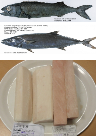 [아시아경제 신범수 기자]식품의약품안전청은 복통, 설사 등 급성 소화기계 장애를 일으키는 기름치에 대해 6월 1일부터 식품원료로 사용을 전면 금지한다고 30일 밝혔다. 기름치는 참치나 메로 등 어종으로 둔갑돼 판매되는 경우가 많아 3월부터 수입이 금지된 바 있으며, 6월부터는 식품의 제조 가공 조리에도 전혀 사용할 수 없게 된다. 또 원양어선 등을 통해 타 어종과 함께 어획돼 반입되는 기름치도 국외로 수출하거나 사료 등 식품 외 용도로만 사용해야 한다. 식약청은 이번 조치를 통해 과거 값싼 기름치가 고가의 메로구이, 눈다랑어 등으로 허위·둔갑 판매되는 행위가 근절돼 소비자 피해를 방지할 수 있을 것으로 기대한다고 밝혔다(사진 맨 아래 기름치와 눈다랑어 제품 비교). 기름치는 1kg당 4000∼4500원인데 비해 참치(새치)는 1kg당 1만 2000∼1만 3000원, 메로는 2만 2000∼2만 3000원 수준이다.기름치의 공식 명칭은 기름갈치꼬치(Oilfish, 사진 위)로 농어목 갈치꼬치과(Gemlylidae)에 속하는 생선이다. 유사 어종으로 흑갈치꼬치(Escolar, 사진 중간)가 있다.신범수 기자 answer@<ⓒ세계를 보는 창 경제를 보는 눈, 아시아경제(www.asiae.co.kr) 무단전재 배포금지>