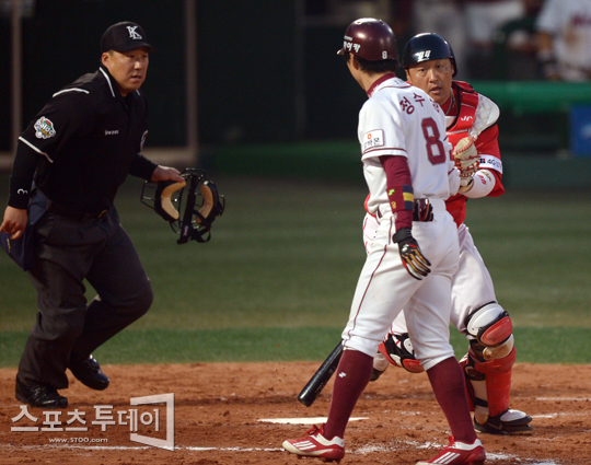 [스포츠투데이 정재훈 기자] 31일 오후 목동야구장에서 열린 '2012 팔도 프로야구' 넥센 히어로즈와 SK 와이번스의 경기 4회말 2사 무주자 상황에서 조인성이 정수성의 타구를 잡아 태그아웃시키고 있다.스포츠투데이 정재훈 사진기자 roze@<ⓒ아시아경제 & 재밌는 뉴스, 즐거운 하루 "스포츠투데이(stoo.com)">