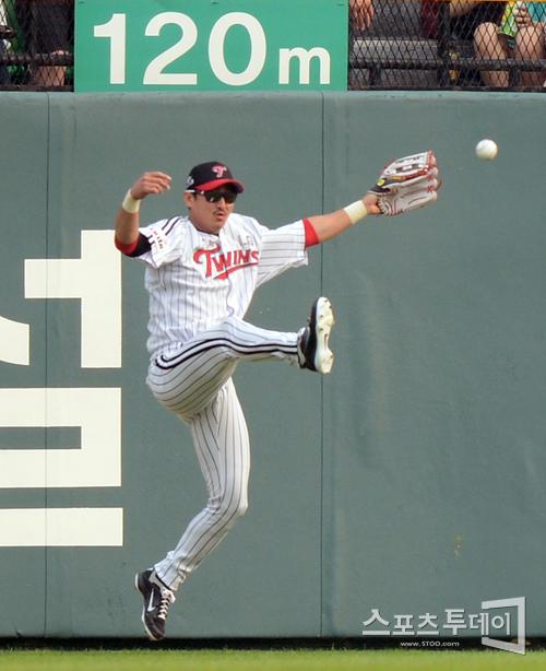 [스포츠투데이 정재훈 기자] 2일 오후 잠실야구장에서 열린 '2012 팔도 프로야구' LG 트윈스와 한화 이글스의 경기 2회초 1사 2루 상황에서 백승룡의 타구를 잡아 좌익수 이병규에게 송구하는 중견수 박용택.스포츠투데이 정재훈 사진기자 roze@<ⓒ아시아경제 & 재밌는 뉴스, 즐거운 하루 "스포츠투데이(stoo.com)">