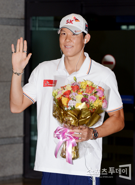 [인천=스포츠투데이 정재훈 기자] 산타클라라그랑프리 대회 4종목에서 우승을 차지한 '마린보이' 박태환(23,SK텔레콤)이 5일 오후 인천국제공항을 통해 귀국했다. 스포츠투데이 정재훈 사진기자 roze@<ⓒ아시아경제 & 재밌는 뉴스, 즐거운 하루 "스포츠투데이(stoo.com)">정재훈 사진기자 roze@<ⓒ아시아 대표 석간 '아시아경제' (www.newsva.co.kr) 무단전재 배포금지>