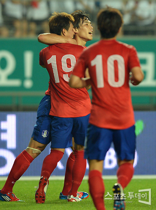 [화성=스포츠투데이 정재훈 기자] 7일 오후 화성종합경기타운에서 열린 '하나은행 초청 올림픽대표팀 친선경기' 한국과 시리아의 경기에서 선제골을 터뜨린 김기희가 기뻐하고 있다.스포츠투데이 정재훈 사진기자 roze@<ⓒ아시아경제 & 재밌는 뉴스, 즐거운 하루 "스포츠투데이(stoo.com)">