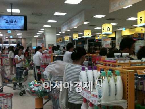 ▲ 7일 오후 서울 시내 한 대형마트에서 고객들이 계산을 하기 위해 줄을 서 있다.