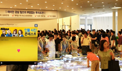 지난 8일 문을 연 래미안 강남 힐즈 모델하우스에 방문객이 몰려 북새통을 이루고 있다.