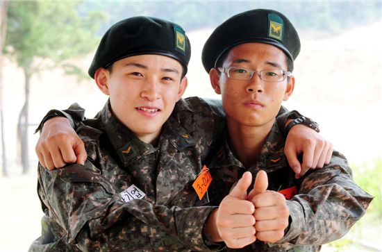 [아시아경제 양낙규 기자]창군 이래 처음으로 다문화가정 부사관이 탄생한다. 우리 군도 본격적인 다문화시대에 진입한 것이다. 주인공은 육군 부사관학교에서 부사관 양성과정 교육을 받고 있는 배준형(22.사진 왼쪽).한기엽(21.사진 오른쪽)부사관 후보생. 각각 어머니가 일본인과 베트남인이다. 한기엽 부사관후보생은 다문화가정이라는 민감한 질문을 던졌지만 거리낌없이 답변을 쏟아냈다. 한 후생의 부사관 지원동기는 세 명의 여동생 때문이다. "돈을 벌어 어린 동생들을 가르치고 싶다"는 한 후보생은 취득한 자격증의 활용법을 생각하다 군에 입대를 결심했다. 한 후보생이 보유한 자격증은 지게차, 롤러, 굴착기 등 중장비 관련 자격증 14개다. 현재 군내 다문화가정 병사들은 육군 179명, 공군 9명, 해병대 5명이다. 군 당국은 다문화가정이 늘어남에 따라 지난 2009년 인종.피부색으로 병역이행을 하지 못하게 만든 규정을 삭제해 입대가 가능해졌다. 또 지난해에는 장교 임관과 입영 선서문에서 '민족'이란 단어를 '국민'으로 바꿨다. 특수집단 배제하지 않기 위해서다. 고등학교를 졸업하고 바로 부사관을 지원한 한 후보생은 "함께 부사관에 지원한 고등학교 동기 2명과 같은 소대에서 생활하며 훈련을 받아 좋다"고 말했다. 두 후보생의 어머니에 대한 생각은 모두 각별하다. 배 후보생이 "첫 월급을 타면 어머니가 고향에 가시는 여비로 보태드리고 싶다"고 하자 한 후보생도 "내가 할 말을 배후보생이 미리했다"며 웃었다. 두 후보생은 12주간의 부사관 양성과정 교육을 마치고 내달 4일 육군하사로 임관하게 된다. 양낙규 기자 if@<ⓒ세계를 보는 창 경제를 보는 눈, 아시아경제(www.asiae.co.kr) 무단전재 배포금지>