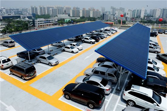 ▲롯데마트가 매장 옥상에 설치한 태양광 발전시설.